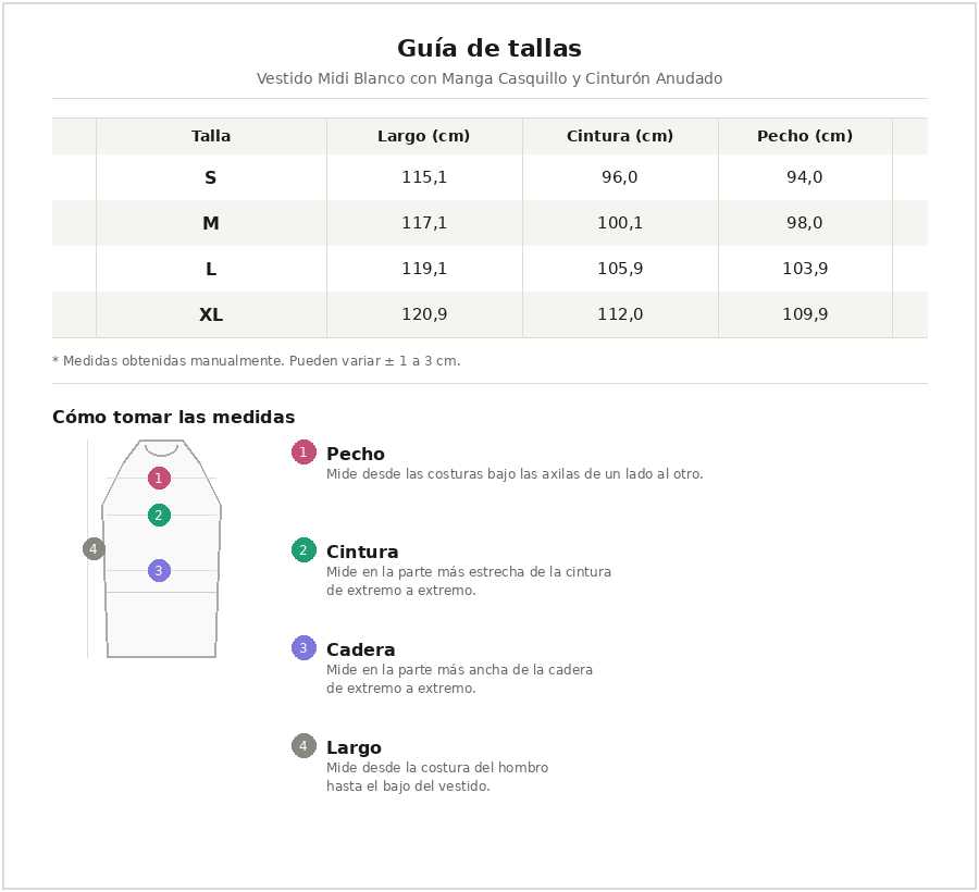 Vestido Midi Blanco con Manga Casquillo y Cinturón Anudado