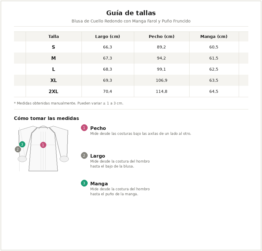 Blusa de Cuello Redondo con Manga Farol y Puño Fruncido