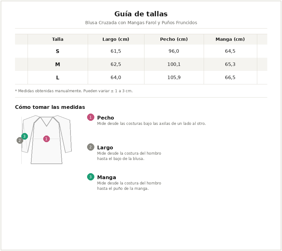 Blusa Cruzada con Mangas Farol y Puños Fruncidos